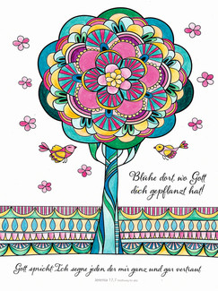 früher eigentlich nur Kinder gemacht haben, wird bei Erwachsenen immer beliebter: mit Buntstiften schwarz-weiße Bilder ausmalen. Als christliches Verlagshaus haben wir uns gedacht: Ausmalbücher mit biblischen Bezügen gibt es kaum. Das sollten wir machen. Gesagt, getan. Als dann Franziska Hedrich, eine Kollegin aus unserer Vertriebsabteilung, die Korrekturseiten im Büro einer Kollegin entdeckte, hat sie gleich um eine Testseite gebeten. „Ich habe mich riesig über das Ausmalbuch gefreut, weil ich so etwas bisher nur für Kinder kannte! Es macht so viel Spaß, die fantasievollen Motive mit allerlei Farben zu füllen, vor allem, wenn es draußen noch etwas karg ist. Da steigt die Vorfreude auf die warmen Monate, in denen ich mich bei der Gestaltung direkt von der Natur inspirieren lassen kann. Das entspannt, und die ermutigenden Worte aus der Bibel, die auf den Seiten zu finden sind, inspirieren.“