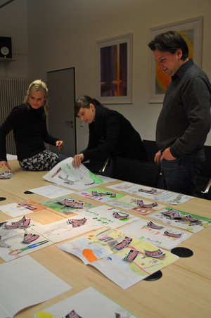 Weil uns die Wahl nicht leicht fiel, haben wir uns für die Auswertung des Mal-Wettbewerbs Verstärkung in den Verlag geholt: Hörspiel-Autor und „Leonie-Erfinder“ Christian Mörken. Gemeinsam bildete er mit Judith Müller („Leonie“-Produkt-Managerin), Wencke Bates (Marketing) und Nicole Schol (Lektorat) die Jury.
