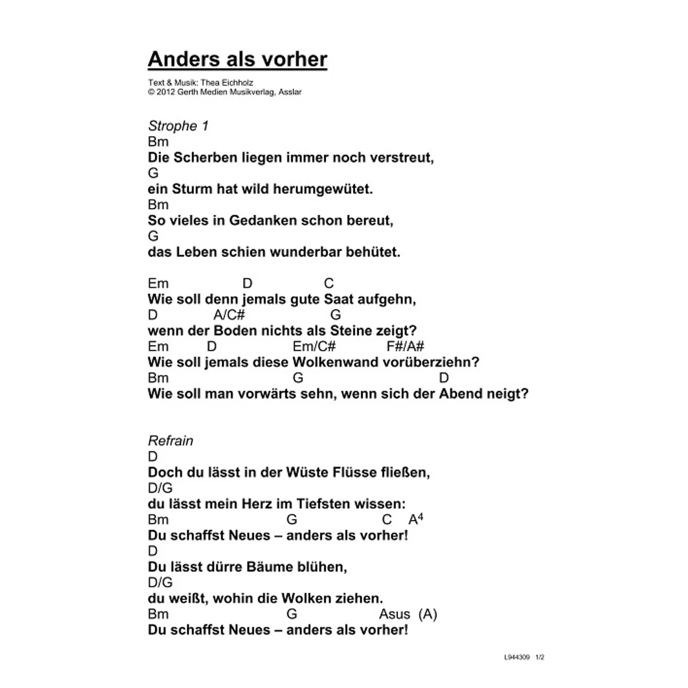 Anders als vorher (diese Variante haben Sie gerade ausgewählt) (mit Akkorden, h-Moll) Thea Eichholz (Komposition, Text) |