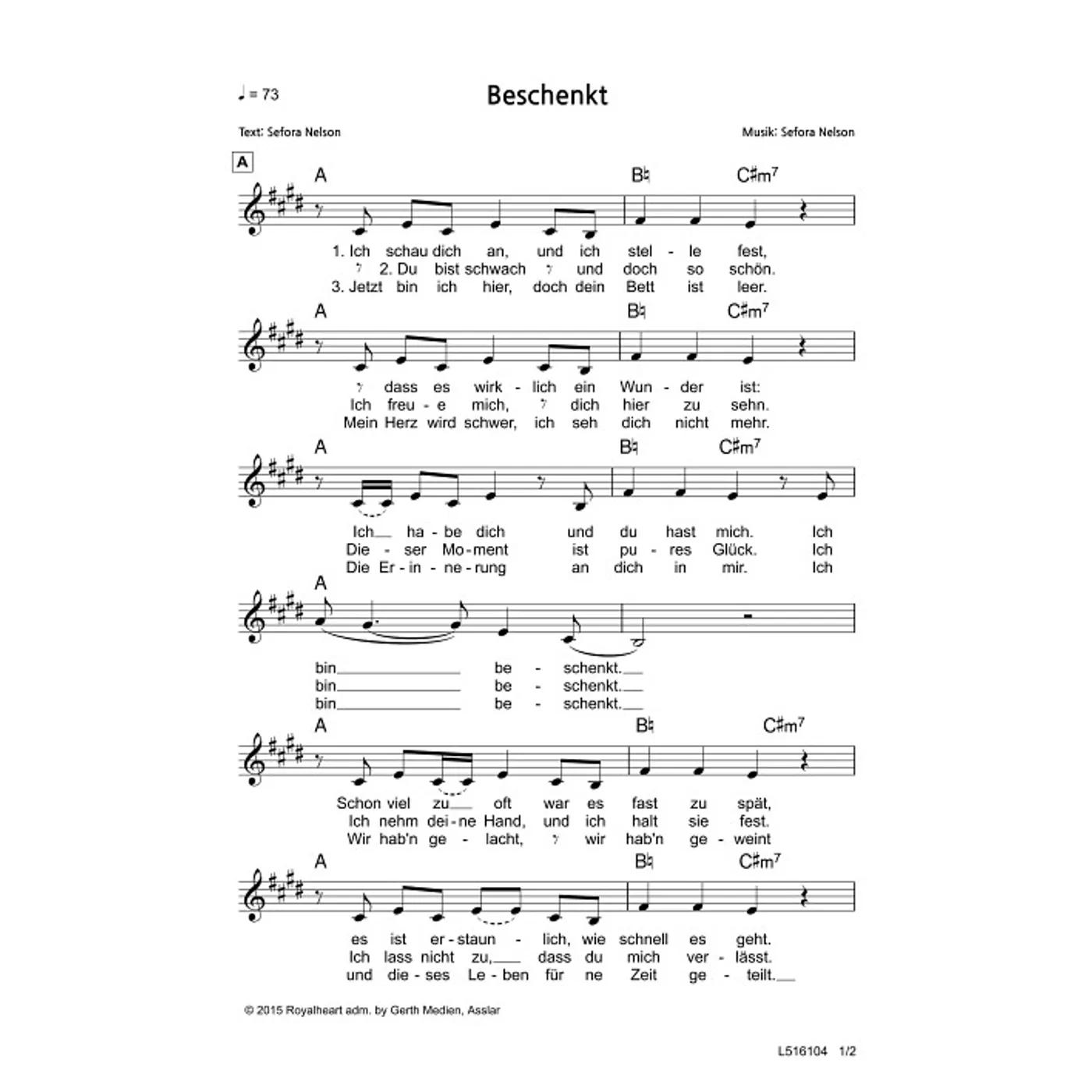 Beschenkt (diese Variante haben Sie gerade ausgewählt) (modern, einstimmig, mit Akkorden, Cis-Moll) Sefora Nelson (Komposition, Text) |