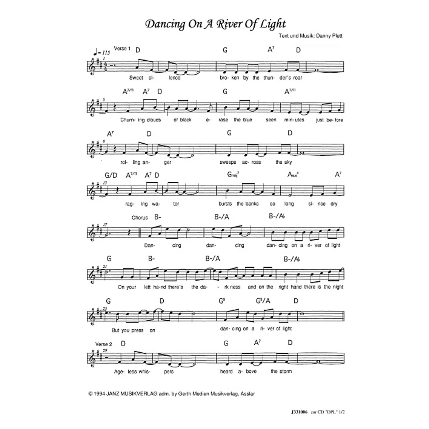 Dancing On A River Of Light (diese Variante haben Sie gerade ausgewählt) (einstimmig, mit Akkorden, D-Dur) Danny Plett (Komposition, Text) |