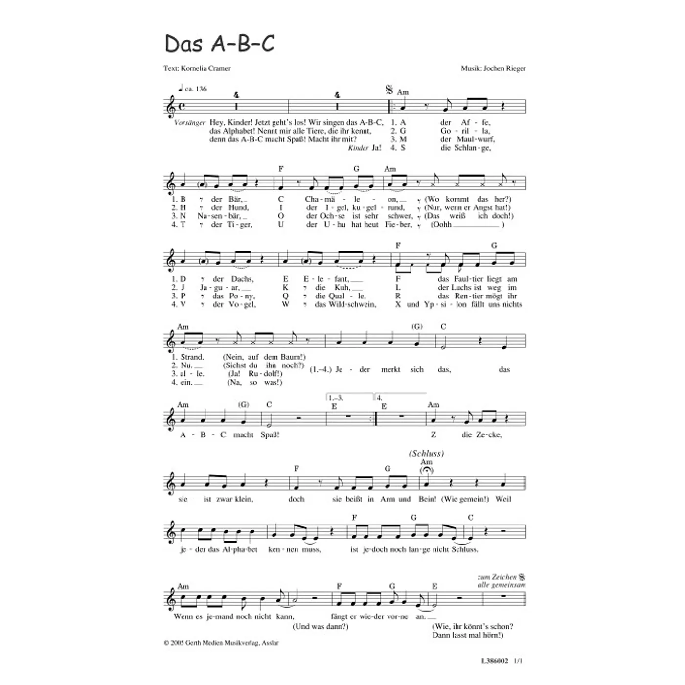 Das A-B-C (diese Variante haben Sie gerade ausgewählt) (einstimmig, mit Akkorden, a-moll-Moll) Jochen Rieger (Komposition), Konny Cramer (Text) |