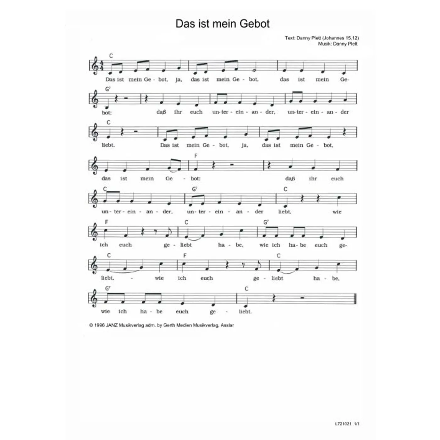 Das ist mein Gebot (diese Variante haben Sie gerade ausgewählt) (einstimmig, mit Akkorden, C-Dur) Danny Plett (Komposition, Text) |