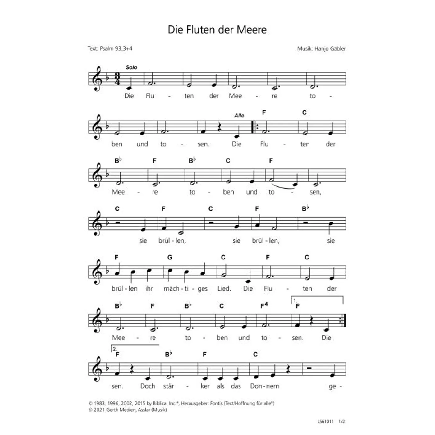 Die Fluten der Meere (diese Variante haben Sie gerade ausgewählt) (einstimmig, mit Akkorden, F-Dur) Hanjo Gäbler (Komposition) |
