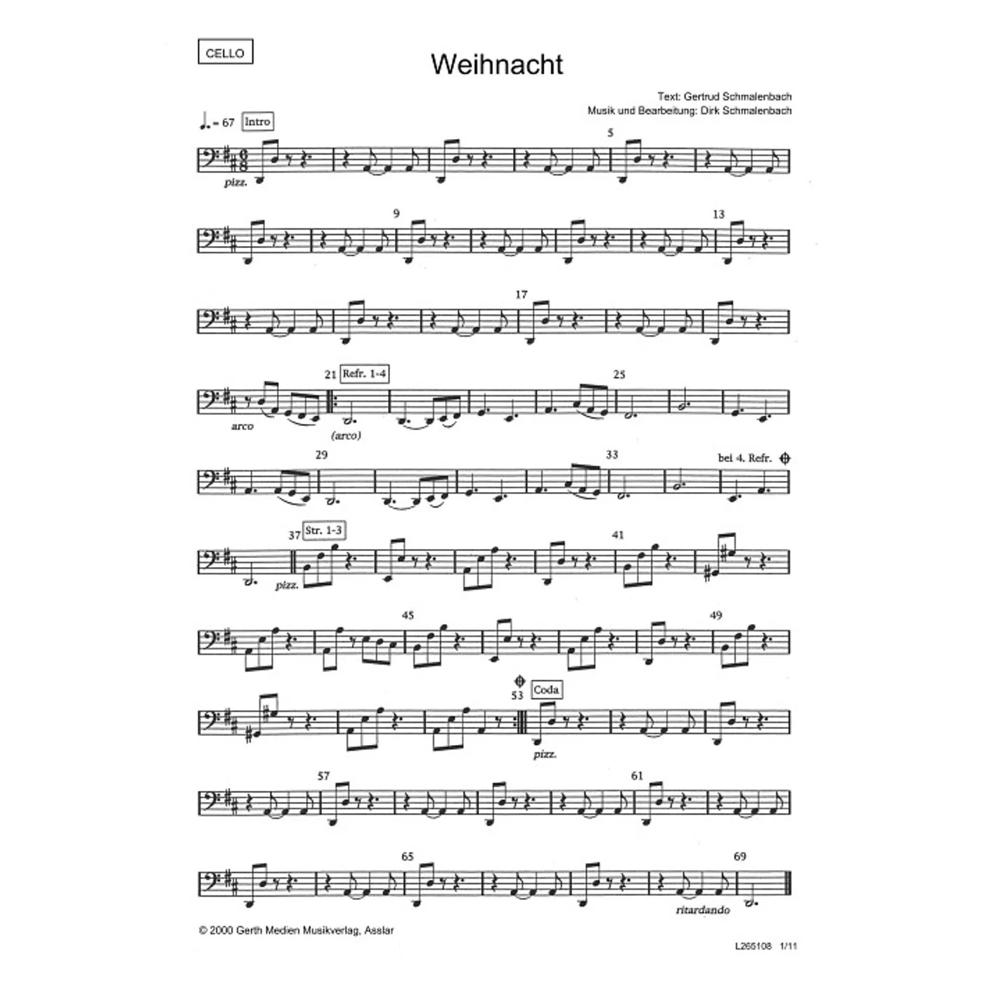 Die Nacht der Geschenke (Cello) (diese Variante haben Sie gerade ausgewählt) (Orchestereinzelstimme) Dirk Schmalenbach (Komposition, Bearbeiter) |