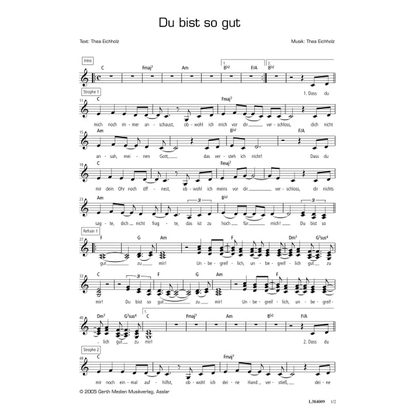 Du bist so gut (diese Variante haben Sie gerade ausgewählt) (modern, dreistimmig, einstimmig, mit Akkorden, C-Dur) Thea Eichholz (Komposition, Text) |