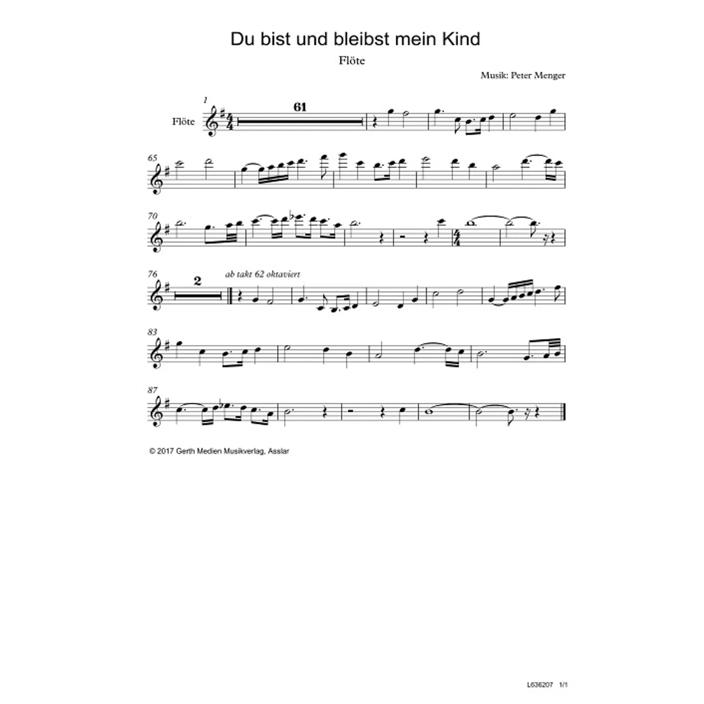 Du bist und bleibst mein Kind (Flöte) (diese Variante haben Sie gerade ausgewählt) (Orchestereinzelstimme) Peter Menger (Komposition) |