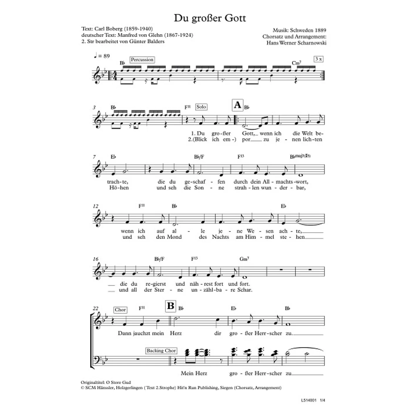 Dies ist ein Download-Artikel und kann nach dem Kauf digital heruntergeladen werden. Vorschau Carl Boberg (Text) Hans Werner Scharnowski (Chorsatz) Manfred von Glehn Manfred von Glehn (Übersetzung) Du großer Gott Gemischter Chor SATB / Solo (Noten - Download) Bitte beachten Sie: Downloads sind aktuell nur in Deutschland erhältlich. Bitte wählen Sie aus, für wie viele Kopien/Ausdrucke Sie eine Lizenz erwerben möchten. Die Lizenz wird entsprechend auf dem Dokument vermerkt. 2,00 € Sofort Lieferbar (per Download) Günstige Mengenpreise verfügbar Günstige Mengenpreise (DE) Kaufen Sie 2 zum Preis von je 1,90 € und sparen Sie 5% Kaufen Sie 10 zum Preis von je 1,80 € und sparen Sie 10% Kaufen Sie 25 zum Preis von je 1,70 € und sparen Sie 15% Kaufen Sie 50 zum Preis von je 1,60 € und sparen Sie 20% Kaufen Sie 100 zum Preis von je 1,50 € und sparen Sie 25% Lizenz pro Kopie/Ausdruck: Bestellen Sie den Artikel jetzt auf: Informationen zur Lizenz Details Reihe: Unvergessen - Lieder, die bleiben Erscheinungstermin: 11.08.2017 Verlag: Hit´n Run Publishing Artikel-Nr.: W80033604 Originaltitel: O Store Gud Tonart: B-Dur Stil/Genre: modern Satz: gemischter Chor, mit Akkorden Seitenzahl: 4 S. Hinweise: DIN A4 Dateigröße insg.: 77,7 Kilobyte Dieses Produkt ist preisgebunden: Ja Download-Material: L514001 (PDF) Angaben zum Hersteller nach GPSR: Gerth Medien i.d. SCM Verlagsgruppe GmbH Berliner Ring 62 35576 Wetzlar DEUTSCHLAND info@scm-verlagsgruppe.de Weitere Details Weitere Varianten Noten-Downloads Du großer Gott (diese Variante haben Sie gerade ausgewählt) (modern, gemischter Chor, mit Akkorden, B-Dur) Carl Boberg (Text), Hans Werner Scharnowski (Chorsatz), Manfred von Glehn, Manfred von Glehn (Übersetzung) modern, gemischter Chor, mit Akkorden, B-Dur 2,00 € Die Preise stellen die Einzelpreise der jeweils verfügbaren Einzeldownloads dar. Bewertungen Für dieses Produkt gibt es noch keine Rezensionen. Das könnte Sie auch interessieren zur Produktseite von Lasten, sie fallen auf Golgatha Lasten, sie fallen auf Golgatha Noten - Download 2,00 € Download
