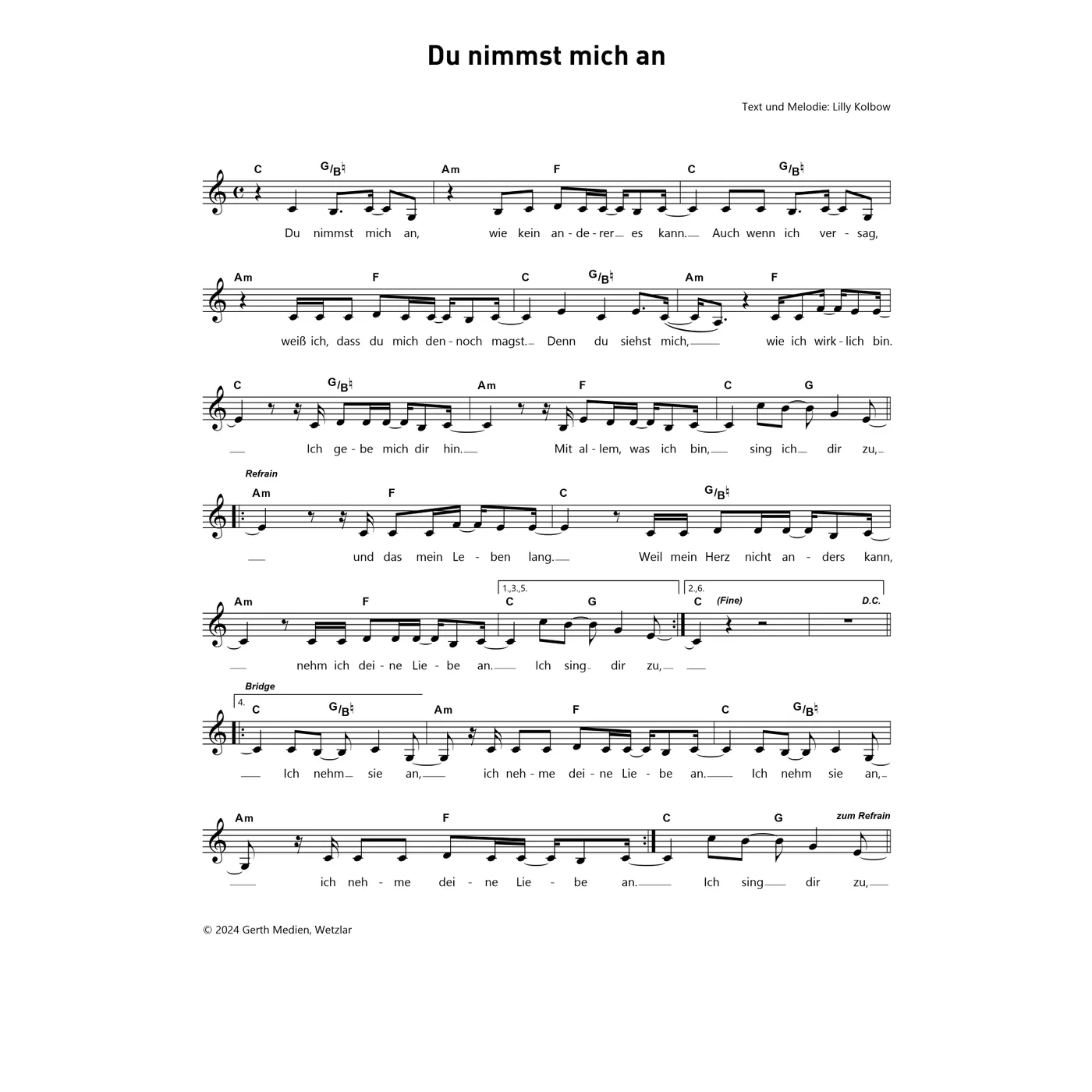 Dies ist ein Download-Artikel und kann nach dem Kauf digital heruntergeladen werden. Vorschau Lilly Kolbow (Text, Melodie) Du nimmst mich an (Noten - Download) Bitte beachten Sie: Downloads sind aktuell nur in Deutschland erhältlich. Bitte wählen Sie aus, für wie viele Kopien/Ausdrucke Sie eine Lizenz erwerben möchten. Die Lizenz wird entsprechend auf dem Dokument vermerkt. 1,50 € Sofort Lieferbar (per Download) Günstige Mengenpreise verfügbar Günstige Mengenpreise (DE) Kaufen Sie 2 zum Preis von je 1,43 € und sparen Sie 5% Kaufen Sie 10 zum Preis von je 1,35 € und sparen Sie 10% Kaufen Sie 25 zum Preis von je 1,28 € und sparen Sie 15% Kaufen Sie 50 zum Preis von je 1,20 € und sparen Sie 20% Kaufen Sie 100 zum Preis von je 1,13 € und sparen Sie 25% Lizenz pro Kopie/Ausdruck: Bestellen Sie den Artikel jetzt auf: Informationen zur Lizenz Details Abdruckvermerk Du nimmst mich an Text & Melodie: Lilly Kolbow © 2024 Gerth Medien Erscheinungstermin: 09.08.2024 Verlag: Gerth Medien Artikel-Nr.: W11174301 Sachgebiet: Noten Tonart: C-Dur Stil/Genre: Kinderlieder Satz: einstimmig Seitenzahl: 1 S. Dateigröße insg.: 54,8 Kilobyte Download-Material: Du nimmst mich an (PDF) Angaben zum Hersteller nach GPSR: Gerth Medien i.d. SCM Verlagsgruppe GmbH Berliner Ring 62 35576 Wetzlar DEUTSCHLAND info@scm-verlagsgruppe.de Weitere Details Weitere Varianten Noten-Downloads Du nimmst mich an (diese Variante haben Sie gerade ausgewählt) (Kinderlieder, einstimmig, C-Dur) Lilly Kolbow (Text, Melodie) Kinderlieder, einstimmig, C-Dur 1,50 € Die Preise stellen die Einzelpreise der jeweils verfügbaren Einzeldownloads dar. Bewertungen Für dieses Produkt gibt es noch keine Rezensionen. Weitere Artikel von Lilly Kolbow zur Produktseite von Du lebst in mir Du lebst in mir Noten - Download 1,50 € Download Alle Artikel von Lilly Kolbow anzeigen