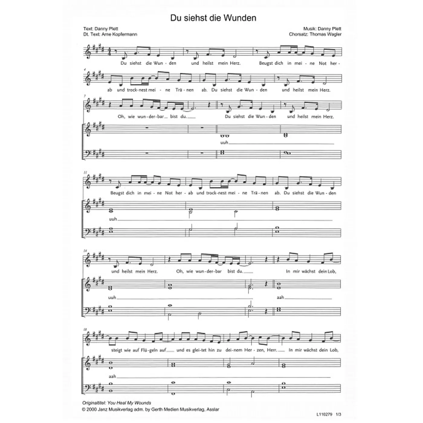 Du siehst die Wunden (diese Variante haben Sie gerade ausgewählt) (modern, Backings, gemischter Chor, vierstimmig) Danny Plett (Komposition, Text), Thomas Wagler (Chorsatz) |
