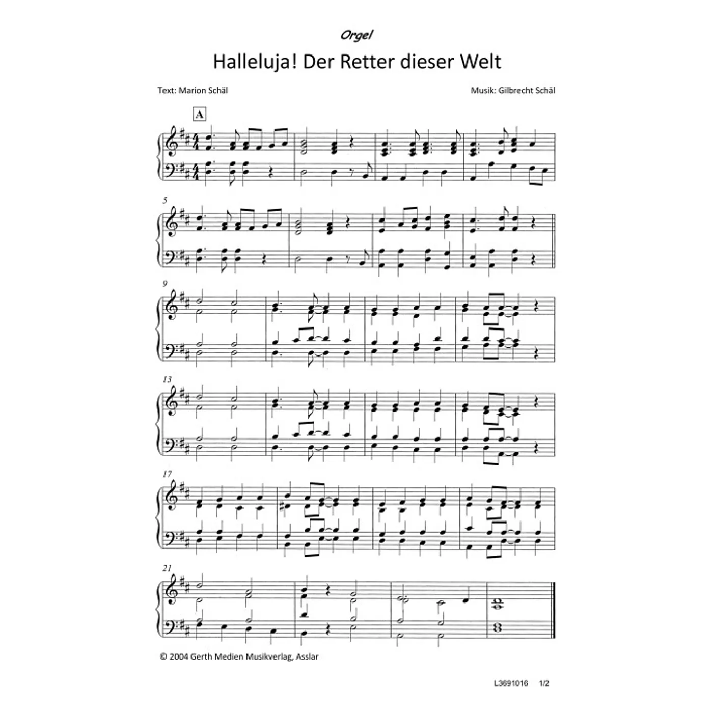 Halleluja! Der Retter dieser Welt ist da (traditionell, gemischter Chor, vierstimmig) Gilbrecht Schäl (Komposition), Marion Schäl (Text) | traditionell, gemischter Chor, vierstimmig | 2,00 € |