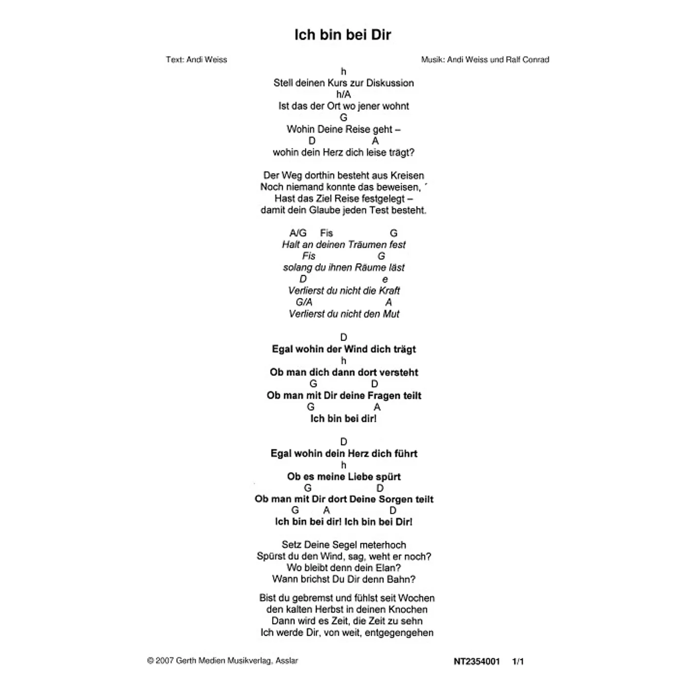 Dies ist ein Download-Artikel und kann nach dem Kauf digital heruntergeladen werden. Vorschau Ralf Conrad (Komposition) Andi Weiss (Komposition, Text) Ich bin bei dir zu 939354 Ungewohnt leise" (Text + Akkorde) (Noten - Download) Bitte beachten Sie: Downloads sind aktuell nur in Deutschland erhältlich. Bitte wählen Sie aus, für wie viele Kopien/Ausdrucke Sie eine Lizenz erwerben möchten. Die Lizenz wird entsprechend auf dem Dokument vermerkt. 1,50 € Rechte erloschen, Artikel wird nicht mehr verkauft Günstige Mengenpreise verfügbar Günstige Mengenpreise (DE) Kaufen Sie 2 zum Preis von je 1,43 € und sparen Sie 5% Kaufen Sie 10 zum Preis von je 1,35 € und sparen Sie 10% Kaufen Sie 25 zum Preis von je 1,28 € und sparen Sie 15% Kaufen Sie 50 zum Preis von je 1,20 € und sparen Sie 20% Kaufen Sie 100 zum Preis von je 1,13 € und sparen Sie 25% Lizenz pro Kopie/Ausdruck: Informationen zur Lizenz Details Verlag: Gerth Medien Artikel-Nr.: W80026928 Seitenzahl: 1 S. Dateigröße insg.: 52,0 Kilobyte Dieses Produkt ist preisgebunden: Ja Download-Material: NT2354001 (PDF) Angaben zum Hersteller nach GPSR: Gerth Medien i.d. SCM Verlagsgruppe GmbH Berliner Ring 62 35576 Wetzlar DEUTSCHLAND info@scm-verlagsgruppe.de Weitere Details Weitere Varianten Noten-Downloads Ich bin bei dir (diese Variante haben Sie gerade ausgewählt) Ralf Conrad (Komposition), Andi Weiss (Komposition, Text) 1,50 € Die Preise stellen die Einzelpreise der jeweils verfügbaren Einzeldownloads dar. Bewertungen Für dieses Produkt gibt es noch keine Rezensionen.