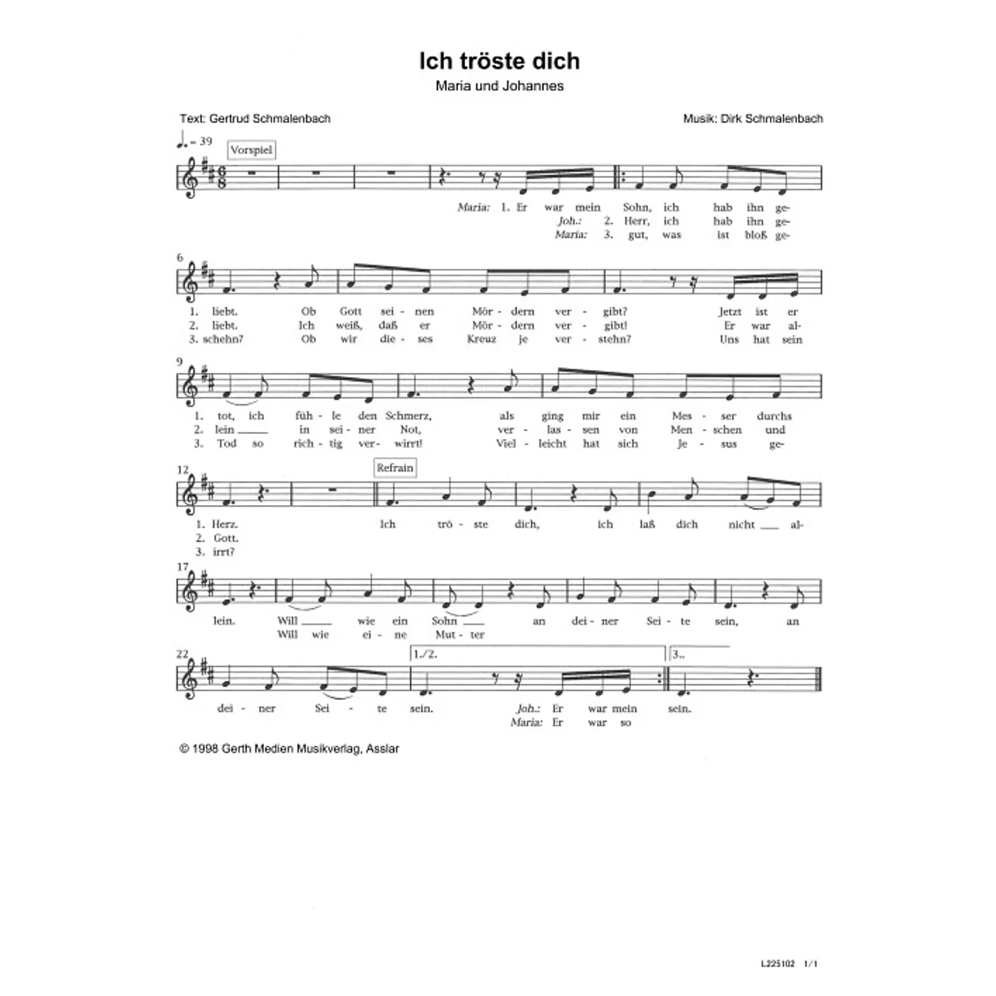 Ich tröste dich (diese Variante haben Sie gerade ausgewählt) (einstimmig) Gertrud Schmalenbach (Text), Dirk Schmalenbach (Komposition, Bearbeiter) |