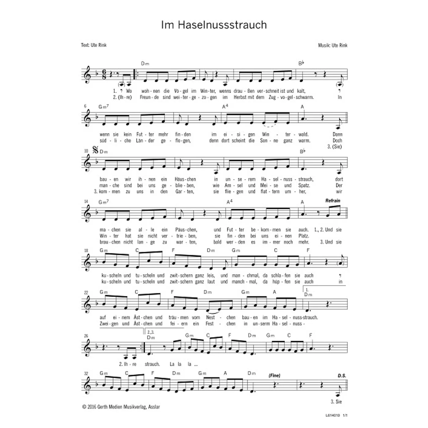 Im Haselnussstrauch (diese Variante haben Sie gerade ausgewählt) (modern, einstimmig, mit Akkorden, D-Moll) Ute Rink (Komposition, Text) |