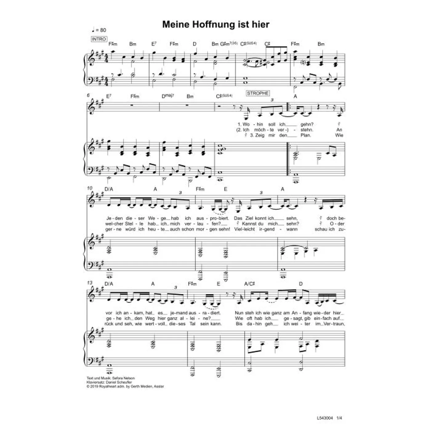 Meine Hoffnung ist hier (diese Variante haben Sie gerade ausgewählt) (Klavier, einstimmig, mit Akkorden, fis-Moll) Sefora Nelson (Komposition, Text), Daniel Scheufler (Klaviersatz) |