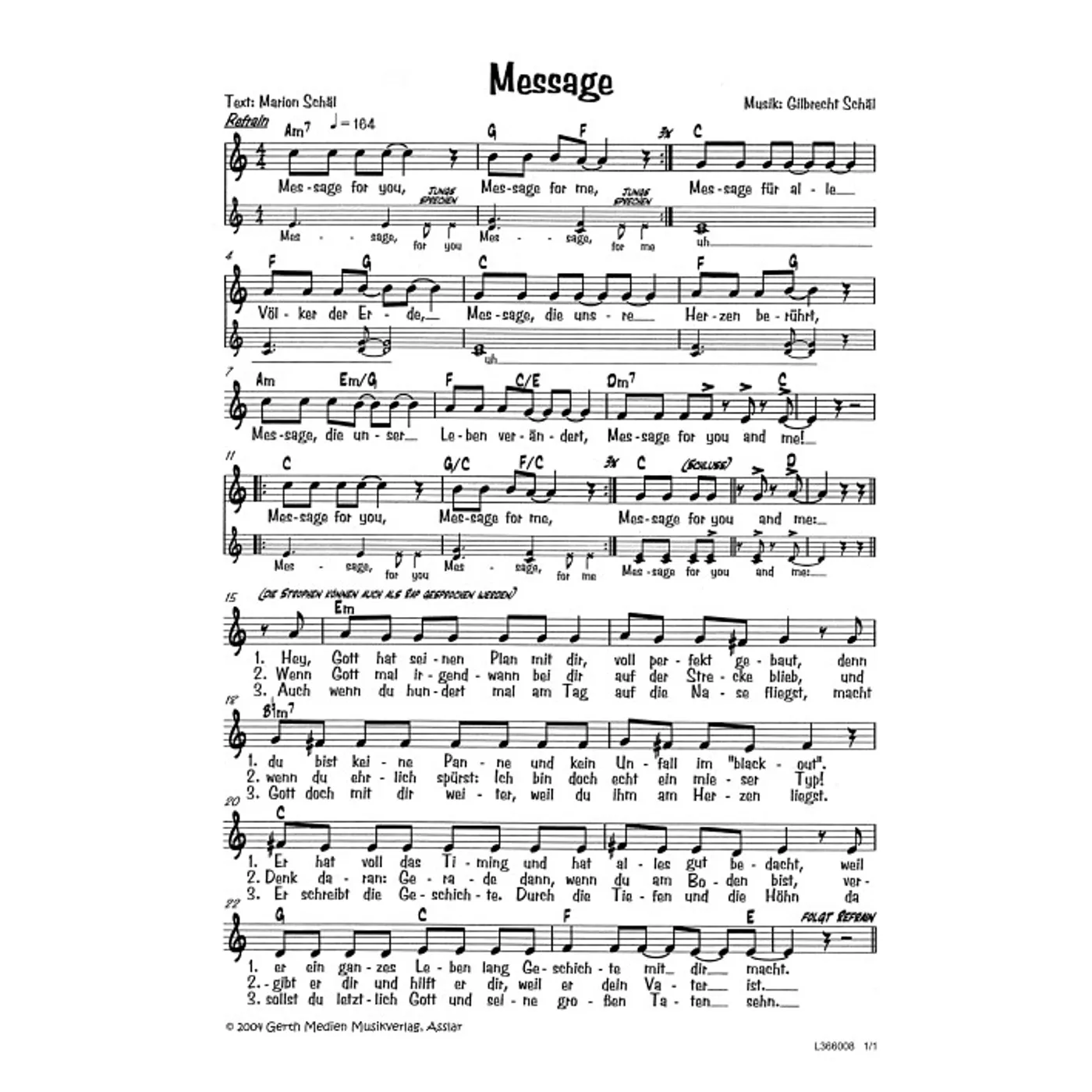 Message (diese Variante haben Sie gerade ausgewählt) (Backings, einstimmig, mit Akkorden, a-moll-Moll) Gilbrecht Schäl (Komposition), Marion Schäl (Text) |