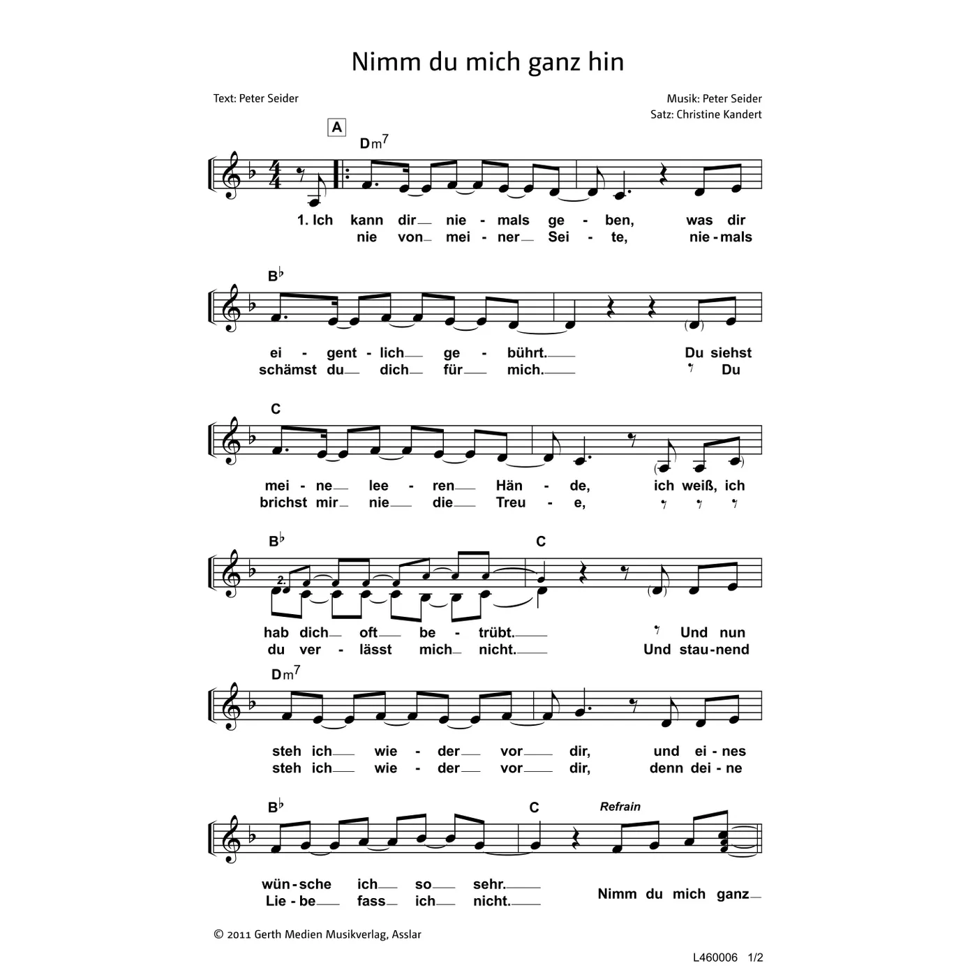 Dies ist ein Download-Artikel und kann nach dem Kauf digital heruntergeladen werden. Vorschau Peter Seider (Komposition, Text) Christine Kandert (Chorsatz) Nimm du mich ganz hin dreistimmig mit Akkorden (Noten - Download) Bitte beachten Sie: Downloads sind aktuell nur in Deutschland erhältlich. Bitte wählen Sie aus, für wie viele Kopien/Ausdrucke Sie eine Lizenz erwerben möchten. Die Lizenz wird entsprechend auf dem Dokument vermerkt. 1,50 € Sofort Lieferbar (per Download) Günstige Mengenpreise verfügbar Günstige Mengenpreise (DE) Kaufen Sie 2 zum Preis von je 1,43 € und sparen Sie 5% Kaufen Sie 10 zum Preis von je 1,35 € und sparen Sie 10% Kaufen Sie 25 zum Preis von je 1,28 € und sparen Sie 15% Kaufen Sie 50 zum Preis von je 1,20 € und sparen Sie 20% Kaufen Sie 100 zum Preis von je 1,13 € und sparen Sie 25% Lizenz pro Kopie/Ausdruck: Bestellen Sie den Artikel jetzt auf: Informationen zur Lizenz Details Reihe: So groß ist der Herr Verlag: Gerth Medien Artikel-Nr.: W80033049 Tonart: F-Dur Satz: dreistimmig, mit Akkorden Seitenzahl: 2 S. Hinweise: DIN A4 Dateigröße insg.: 168,1 Kilobyte Dieses Produkt ist preisgebunden: Ja Download-Material: L460006 (PDF) Angaben zum Hersteller nach GPSR: Gerth Medien i.d. SCM Verlagsgruppe GmbH Berliner Ring 62 35576 Wetzlar DEUTSCHLAND info@scm-verlagsgruppe.de Weitere Details Weitere Varianten Noten-Downloads Nimm du mich ganz hin (diese Variante haben Sie gerade ausgewählt) (dreistimmig, mit Akkorden, F-Dur) Peter Seider (Komposition, Text), Christine Kandert (Chorsatz) dreistimmig, mit Akkorden, F-Dur 1,50 € Die Preise stellen die Einzelpreise der jeweils verfügbaren Einzeldownloads dar. Bewertungen Für dieses Produkt gibt es noch keine Rezensionen.