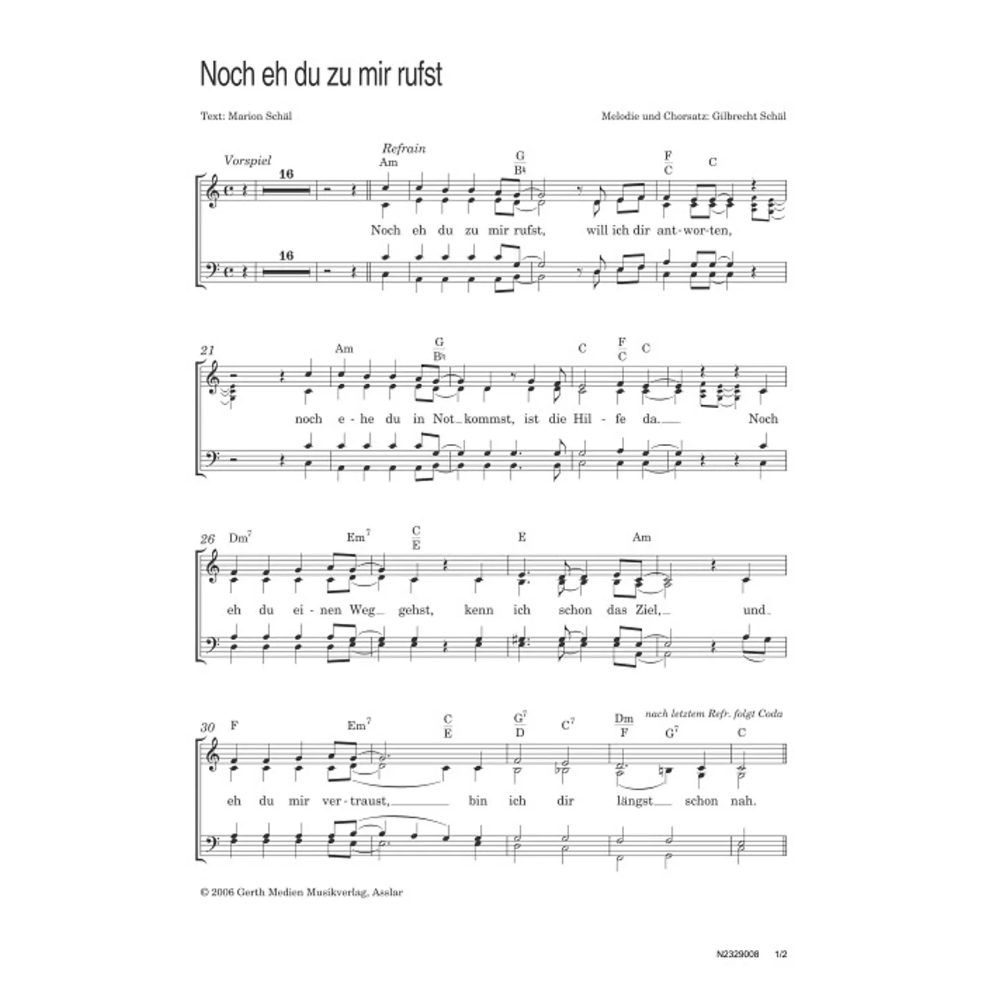 Noch eh du zu mir rufst (traditionell, gemischter Chor) Gilbrecht Schäl (Komposition), Marion Schäl (Text) | traditionell, gemischter Chor | 2,00 € | ||