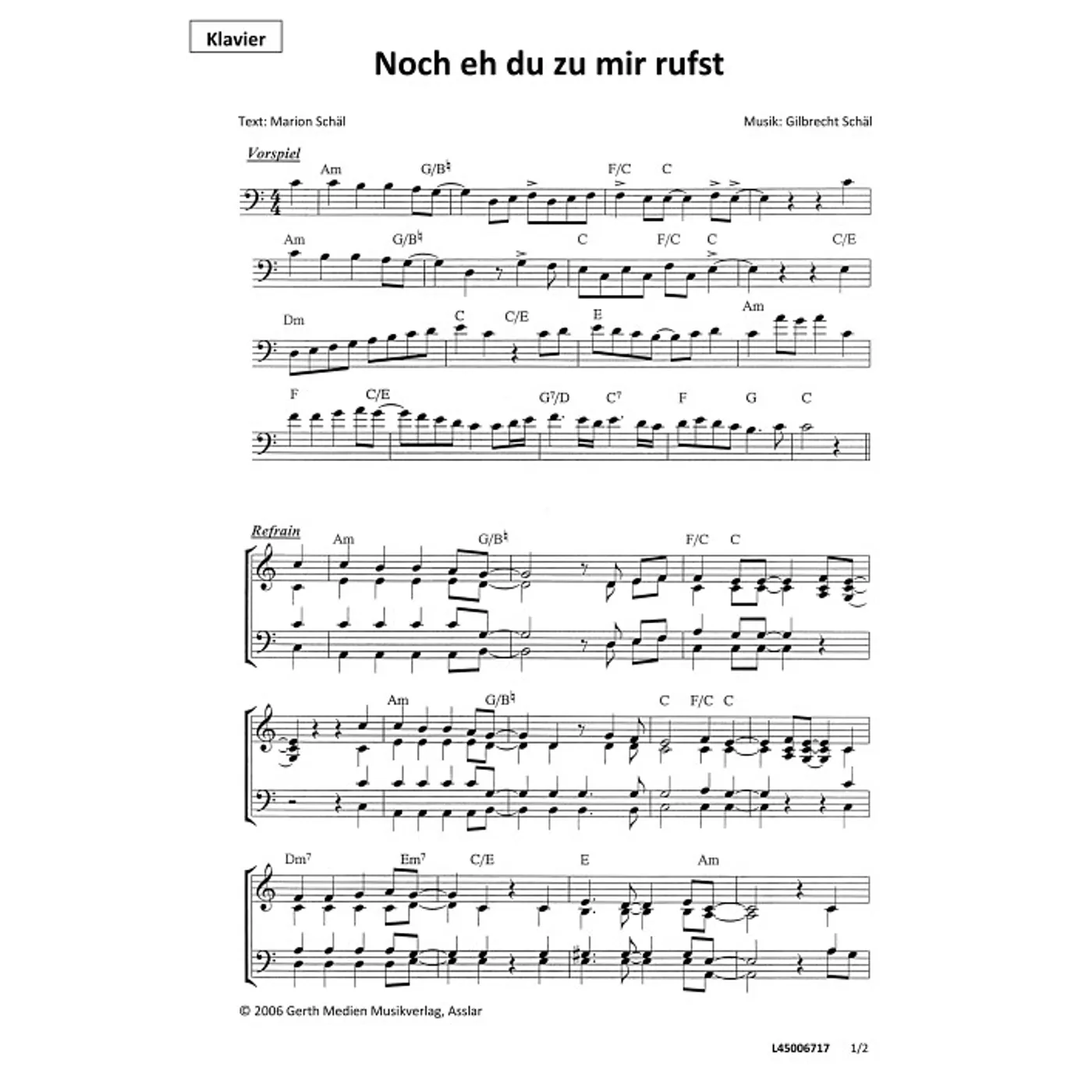 Noch eh du zu mir rufst (traditionell, gemischter Chor, mit Akkorden, vierstimmig, a-moll-Moll) Gilbrecht Schäl (Komposition), Marion Schäl (Text) | traditionell, gemischter Chor, mit Akkorden, vierstimmig, a-moll-Moll | 1,50 € |