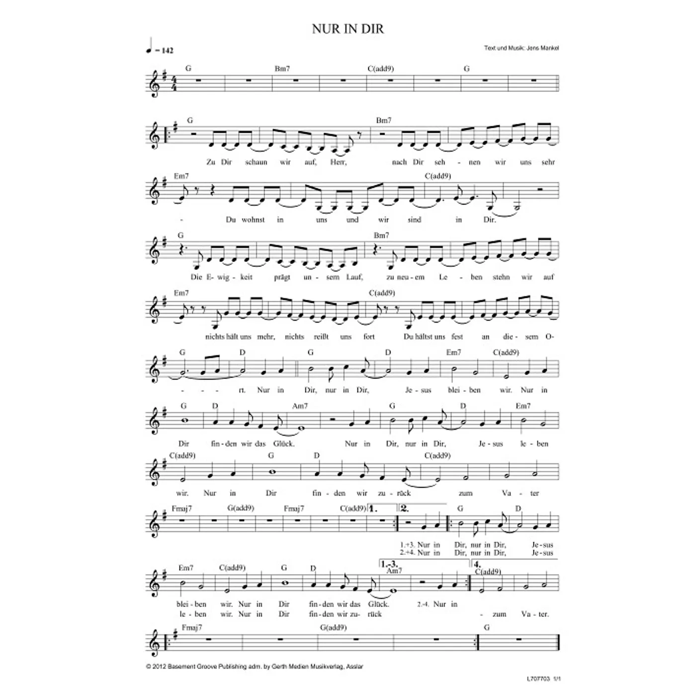 Nur in dir (diese Variante haben Sie gerade ausgewählt) (einstimmig, mit Akkorden, G-Dur) Jens Mankel (Komposition, Text) |