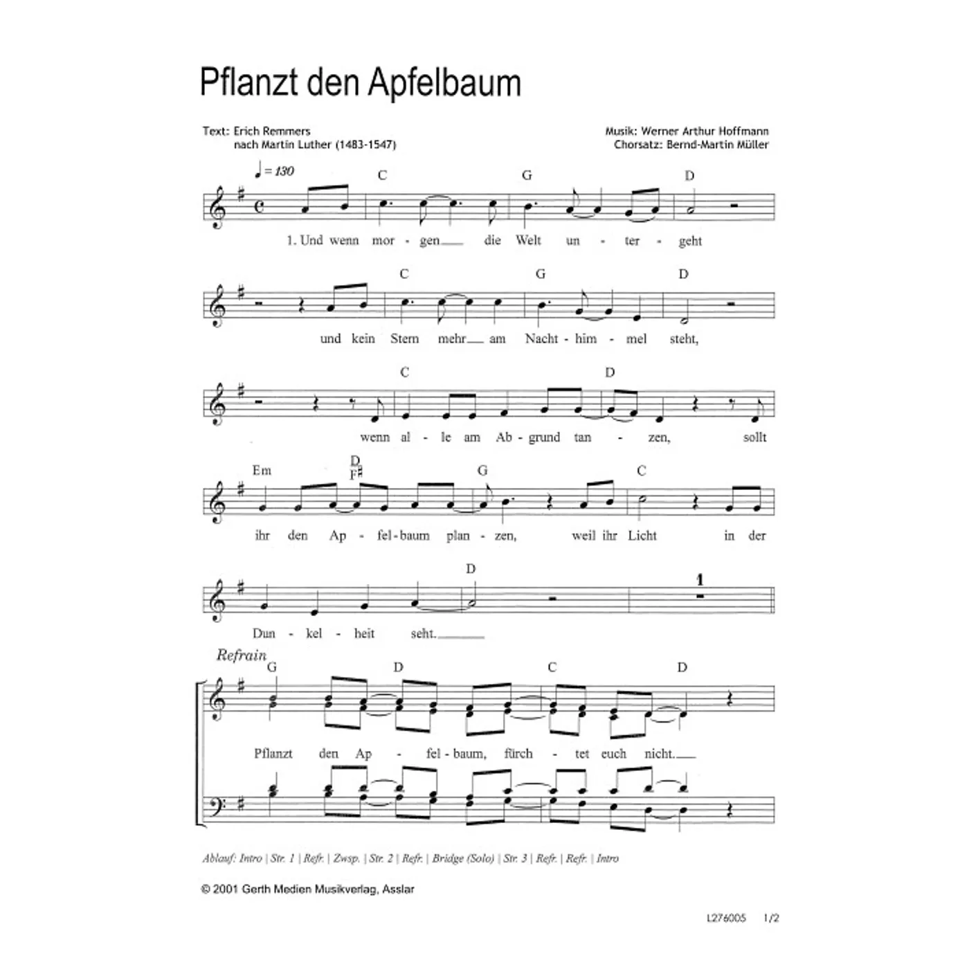 Pflanzt den Apfelbaum (gemischter Chor) Erich Remmers (Text) | gemischter Chor | 2,00 € |