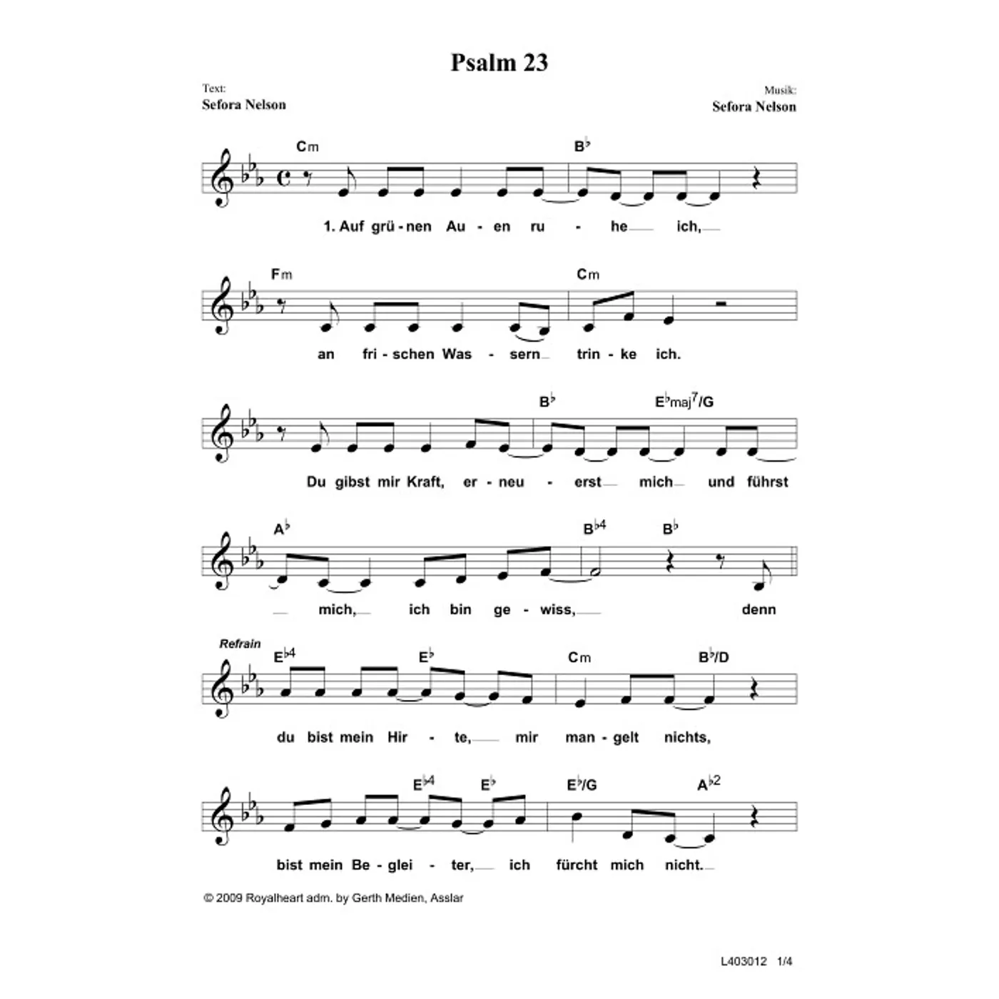 Dies ist ein Download-Artikel und kann nach dem Kauf digital heruntergeladen werden. Vorschau Sefora Nelson (Komposition, Text) Psalm 23 einstimmig mit Akkorden (Noten - Download) Bitte beachten Sie: Downloads sind aktuell nur in Deutschland erhältlich. Bitte wählen Sie aus, für wie viele Kopien/Ausdrucke Sie eine Lizenz erwerben möchten. Die Lizenz wird entsprechend auf dem Dokument vermerkt. 2,00 € Sofort Lieferbar (per Download) Günstige Mengenpreise verfügbar Günstige Mengenpreise (DE) Kaufen Sie 2 zum Preis von je 1,90 € und sparen Sie 5% Kaufen Sie 10 zum Preis von je 1,80 € und sparen Sie 10% Kaufen Sie 25 zum Preis von je 1,70 € und sparen Sie 15% Kaufen Sie 50 zum Preis von je 1,60 € und sparen Sie 20% Kaufen Sie 100 zum Preis von je 1,50 € und sparen Sie 25% Lizenz pro Kopie/Ausdruck: Bestellen Sie den Artikel jetzt auf: Informationen zur Lizenz Details Verlag: Royalheart Artikel-Nr.: W80032336 Tonart: C-Moll Satz: einstimmig, mit Akkorden Seitenzahl: 4 S. Hinweise: DIN A4 Dateigröße insg.: 249,4 Kilobyte Dieses Produkt ist preisgebunden: Ja Download-Material: L403012 (PDF) Angaben zum Hersteller nach GPSR: Gerth Medien i.d. SCM Verlagsgruppe GmbH Berliner Ring 62 35576 Wetzlar DEUTSCHLAND info@scm-verlagsgruppe.de Weitere Details Weitere Varianten Noten-Downloads Psalm 23 (diese Variante haben Sie gerade ausgewählt) (einstimmig, mit Akkorden, C-Moll) Sefora Nelson (Komposition, Text) einstimmig, mit Akkorden, C-Moll 2,00 € Die Preise stellen die Einzelpreise der jeweils verfügbaren Einzeldownloads dar. Bewertungen Für dieses Produkt gibt es noch keine Rezensionen. Weitere Artikel von Sefora Nelson zur Produktseite von Best of Sefora Nelson Best of Sefora Nelson Audio - Doppel-CD 20,00 € Lieferbar zur Produktseite von Buchset: Sefora Nelson Buchset: Sefora Nelson Buch - Gebunden 36,00 € Lieferbar zur Produktseite von Weißt du eigentlich Weißt du eigentlich Noten - Download 3,80 € Download zur Produktseite von Komm vertraue mir noch mal Komm vertraue mir noch mal Noten - Download 2,00 € Download zur Produktseite von Wenn mein Leben ein Bild wär - Songbook Wenn mein Leben ein Bild wär - Songbook Liederbuch - Spiralbindung 14,00 € Lieferbar zur Produktseite von Passion und Ostern - Noten für Chöre Passion und Ostern - Noten für Chöre Noten - Download 9,50 € Download zur Produktseite von Denn du bist bei mir Denn du bist bei mir Buch - Gebunden 16,00 € Lieferbar zur Produktseite von Best of Sefora Nelson - Songbook Best of Sefora Nelson - Songbook Liederbuch - Spiralbindung 14,00 € Lieferbar zur Produktseite von Wenn mein Leben ein Bild wär Wenn mein Leben ein Bild wär Audio - CD 18,00 € Lieferbar zur Produktseite von Näher, noch näher Näher, noch näher Audio - CD 18,00 € Lieferbar zur Produktseite von Komm, vertraue mir noch mal Komm, vertraue mir noch mal Noten - Download 4,80 € Download zur Produktseite von Von guten Mächten Von guten Mächten Noten - Download 4,80 € Download Alle Artikel von Sefora Nelson anzeigen Das könnte Sie auch interessieren zur Produktseite von Sag mir warum Sag mir warum Noten - Download 2,00 € Download zur Produktseite von Schenk mir deine Augen Schenk mir deine Augen Noten - Download 2,00 € Download