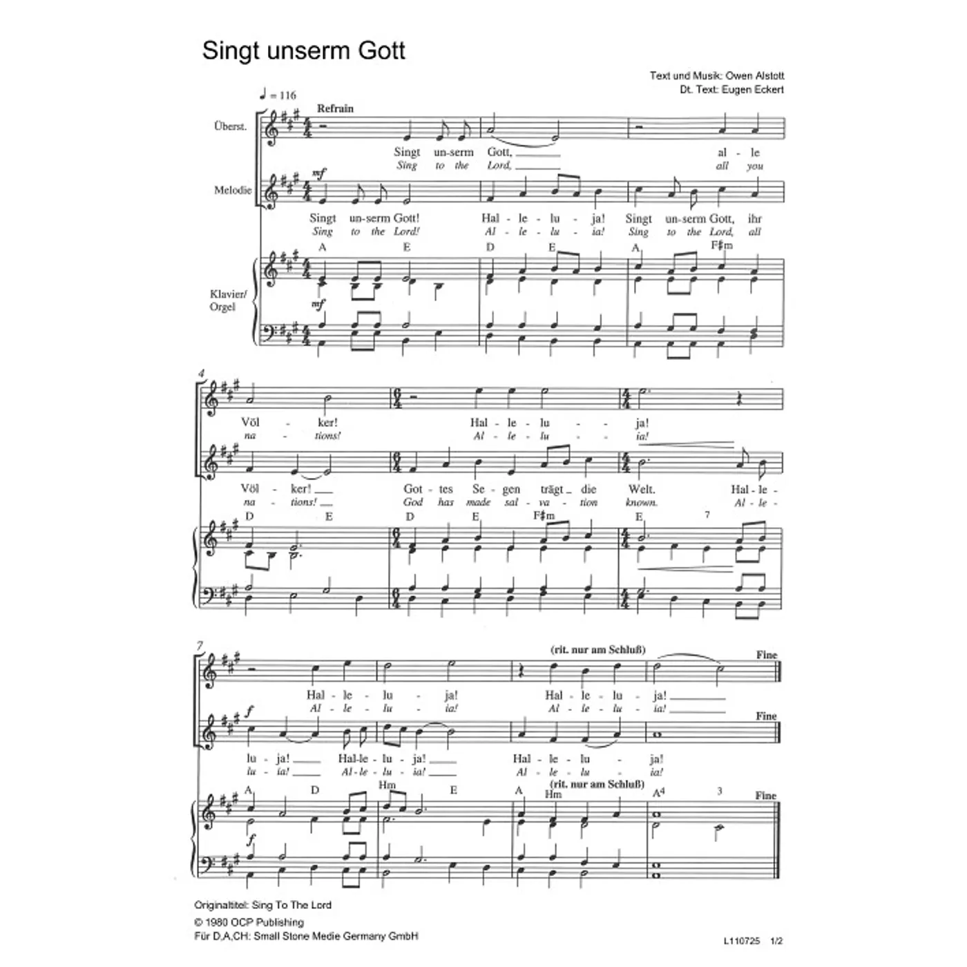 Dies ist ein Download-Artikel und kann nach dem Kauf digital heruntergeladen werden. Vorschau Owen Alstott (Komposition, Text) Eugen Eckert (Übersetzung) Hast du heute schon danke gesagt (Fargott) Gemischter Chor unisono / Oberstimme / Klavierbegleitung (Noten - Download) Bitte beachten Sie: Downloads sind aktuell nur in Deutschland erhältlich. Bitte wählen Sie aus, für wie viele Kopien/Ausdrucke Sie eine Lizenz erwerben möchten. Die Lizenz wird entsprechend auf dem Dokument vermerkt. 2,80 € Sofort Lieferbar (per Download) Günstige Mengenpreise verfügbar Günstige Mengenpreise (DE) Kaufen Sie 2 zum Preis von je 2,66 € und sparen Sie 5% Kaufen Sie 10 zum Preis von je 2,52 € und sparen Sie 10% Kaufen Sie 25 zum Preis von je 2,38 € und sparen Sie 15% Kaufen Sie 50 zum Preis von je 2,24 € und sparen Sie 20% Kaufen Sie 100 zum Preis von je 2,10 € und sparen Sie 25% Lizenz pro Kopie/Ausdruck: Bestellen Sie den Artikel jetzt auf: Informationen zur Lizenz Details Erscheinungstermin: 01.09.2015 Verlag: Small Stone Media Artikel-Nr.: W80028686 Originaltitel: Sing To The Lord Tonart: A-Dur Satz: einstimmig, gemischter Chor, Klavier, mit Akkorden Seitenzahl: 2 S. Hinweise: DIN A4 Dateigröße insg.: 604,5 Kilobyte Dieses Produkt ist preisgebunden: Ja Download-Material: L110725 (PDF) Angaben zum Hersteller nach GPSR: Gerth Medien i.d. SCM Verlagsgruppe GmbH Berliner Ring 62 35576 Wetzlar DEUTSCHLAND info@scm-verlagsgruppe.de Weitere Details Weitere Varianten Noten-Downloads Hast du heute schon danke gesagt (Fargott) (diese Variante haben Sie gerade ausgewählt) (Klavier, einstimmig, gemischter Chor, mit Akkorden, A-Dur) Owen Alstott (Komposition, Text), Eugen Eckert (Übersetzung) Klavier, einstimmig, gemischter Chor, mit Akkorden, A-Dur 2,80 € Die Preise stellen die Einzelpreise der jeweils verfügbaren Einzeldownloads dar. Bewertungen Für dieses Produkt gibt es noch keine Rezensionen.