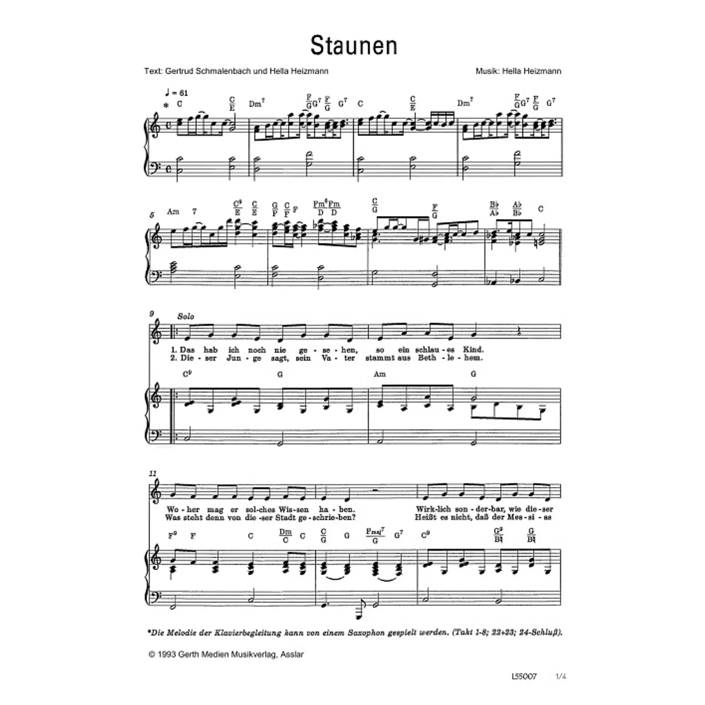 Staunen (diese Variante haben Sie gerade ausgewählt) (Kinderchor, Klavier, dreistimmig, mit Akkorden, C-Dur) Hella Heizmann (Komposition, Text), Gertrud Schmalenbach (Text) |