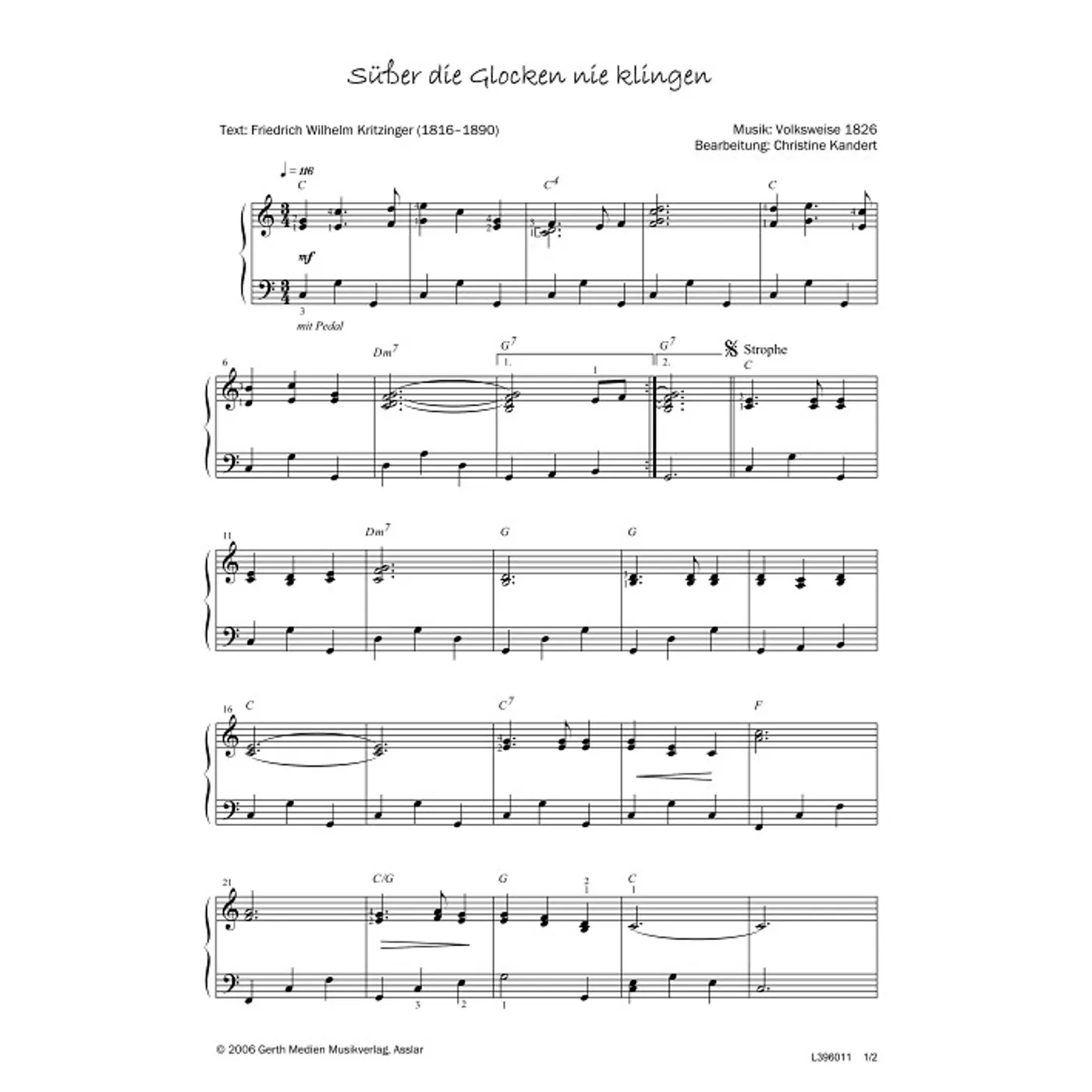 Süßer die Glocken nie klingen (diese Variante haben Sie gerade ausgewählt) (traditionell, Klavier, Klavierpartitur, Partituren, mit Akkorden, C-Dur) Christine Kandert (Klaviersatz) |