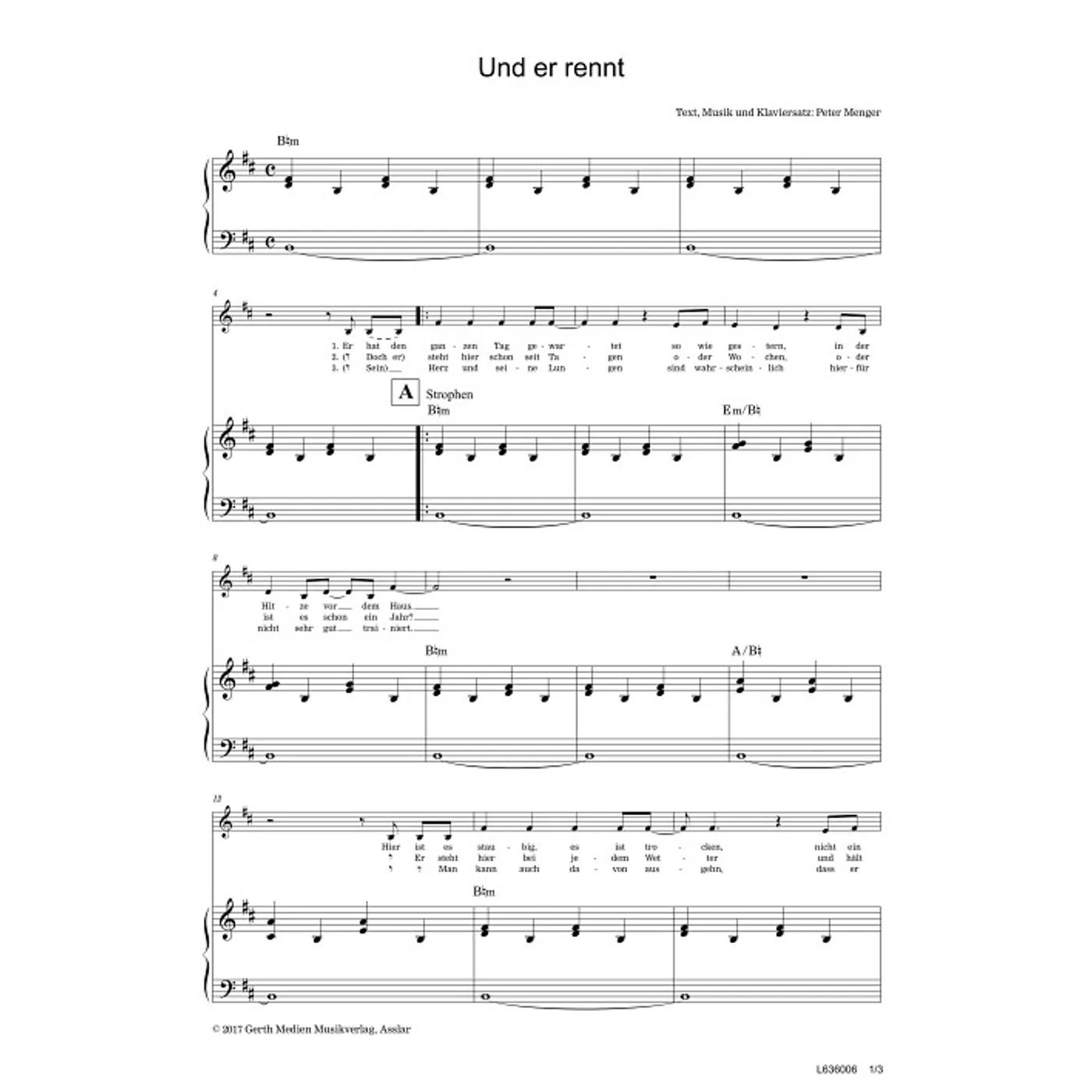 Und er rennt (einstimmig, mit Akkorden, h-Moll, gleiche Reihe) Peter Menger (Komposition, Text) | einstimmig, mit Akkorden, h-Moll, gleiche Reihe | 1,50 € |