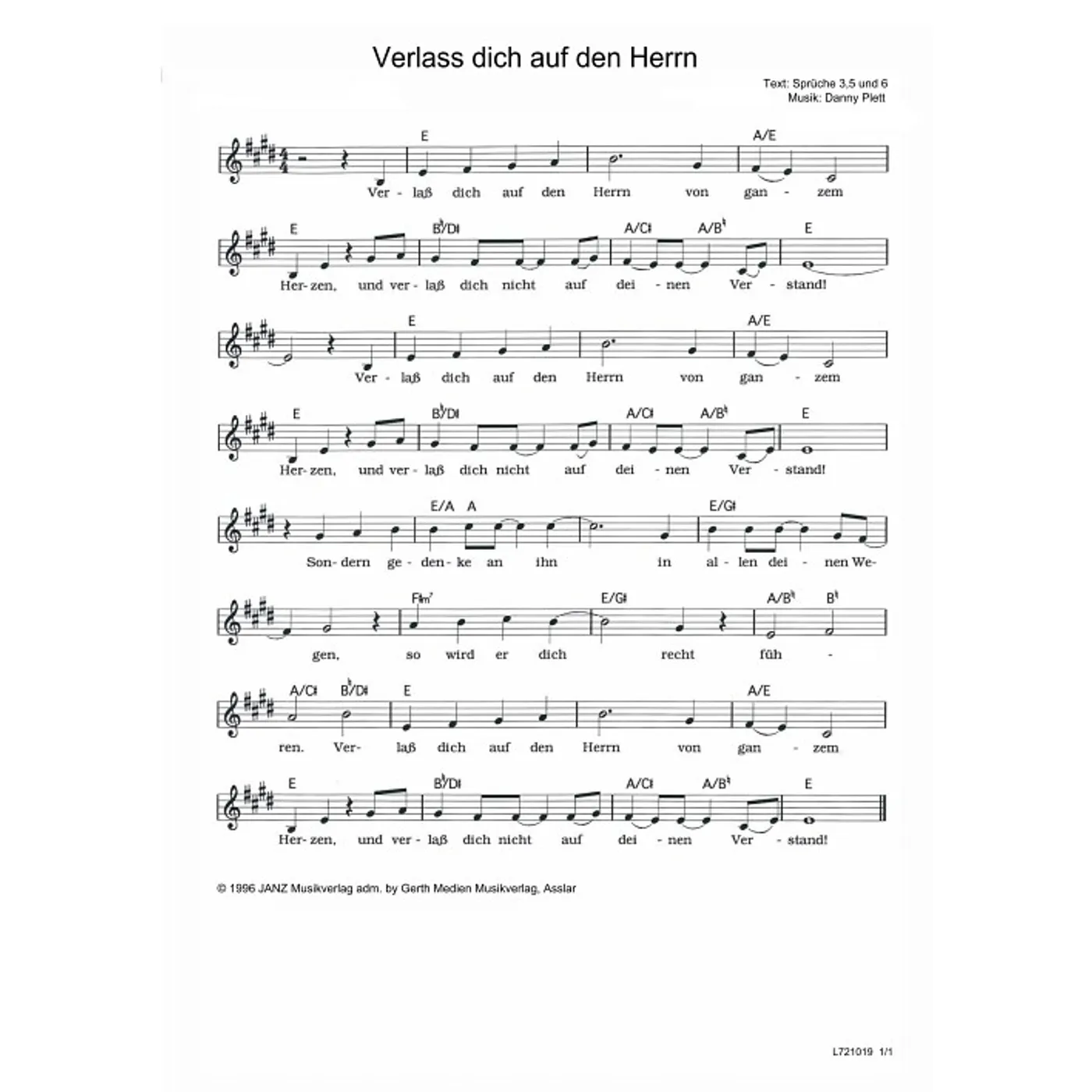 Verlass dich auf den Herrn (diese Variante haben Sie gerade ausgewählt) (einstimmig, mit Akkorden, E-Dur) Danny Plett (Komposition, Text) |