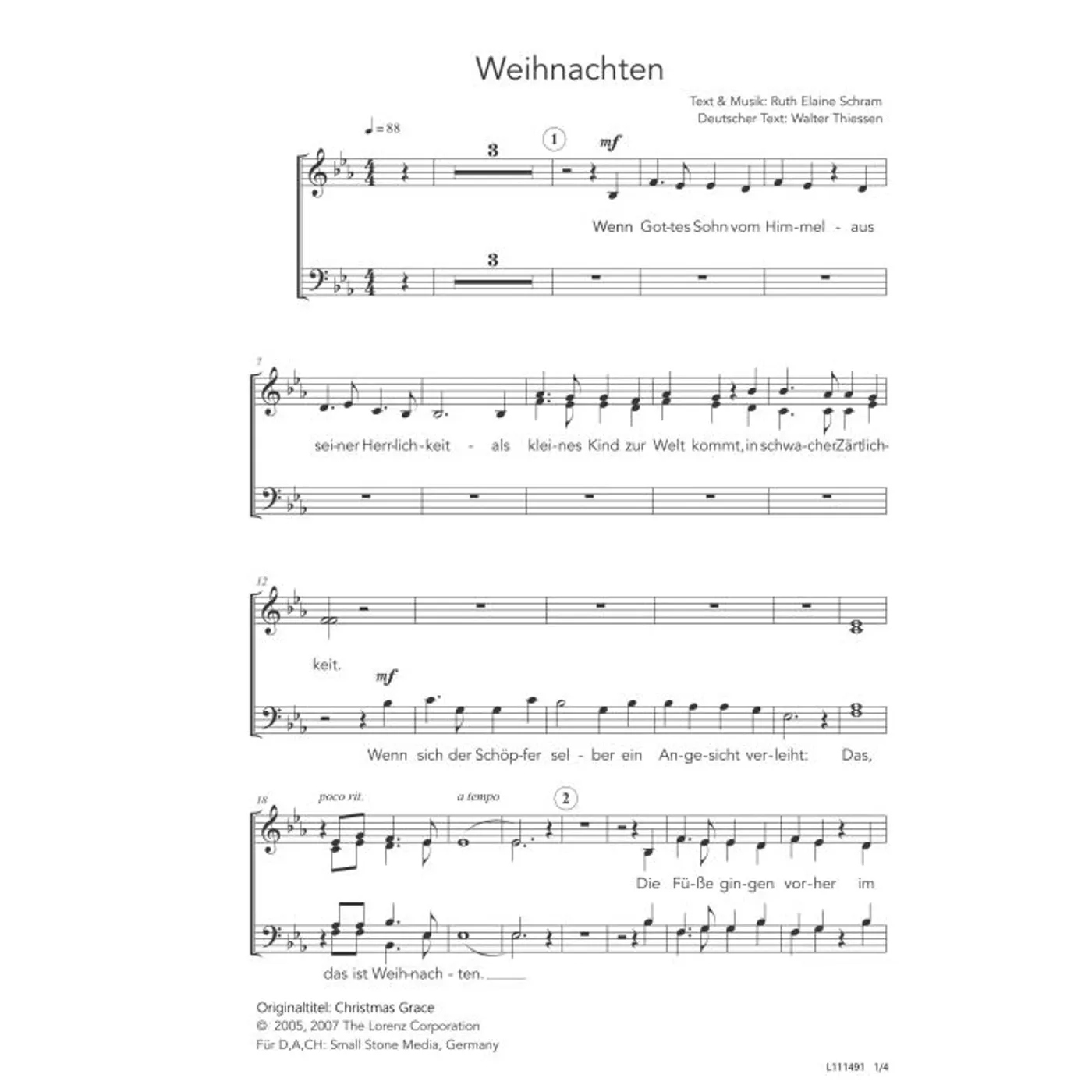 Weihnachten (diese Variante haben Sie gerade ausgewählt) (modern, gemischter Chor, vierstimmig) Ruth Elaine Schram (Komposition, Text, Chorsatz), Walter Thiessen (Übersetzung) |