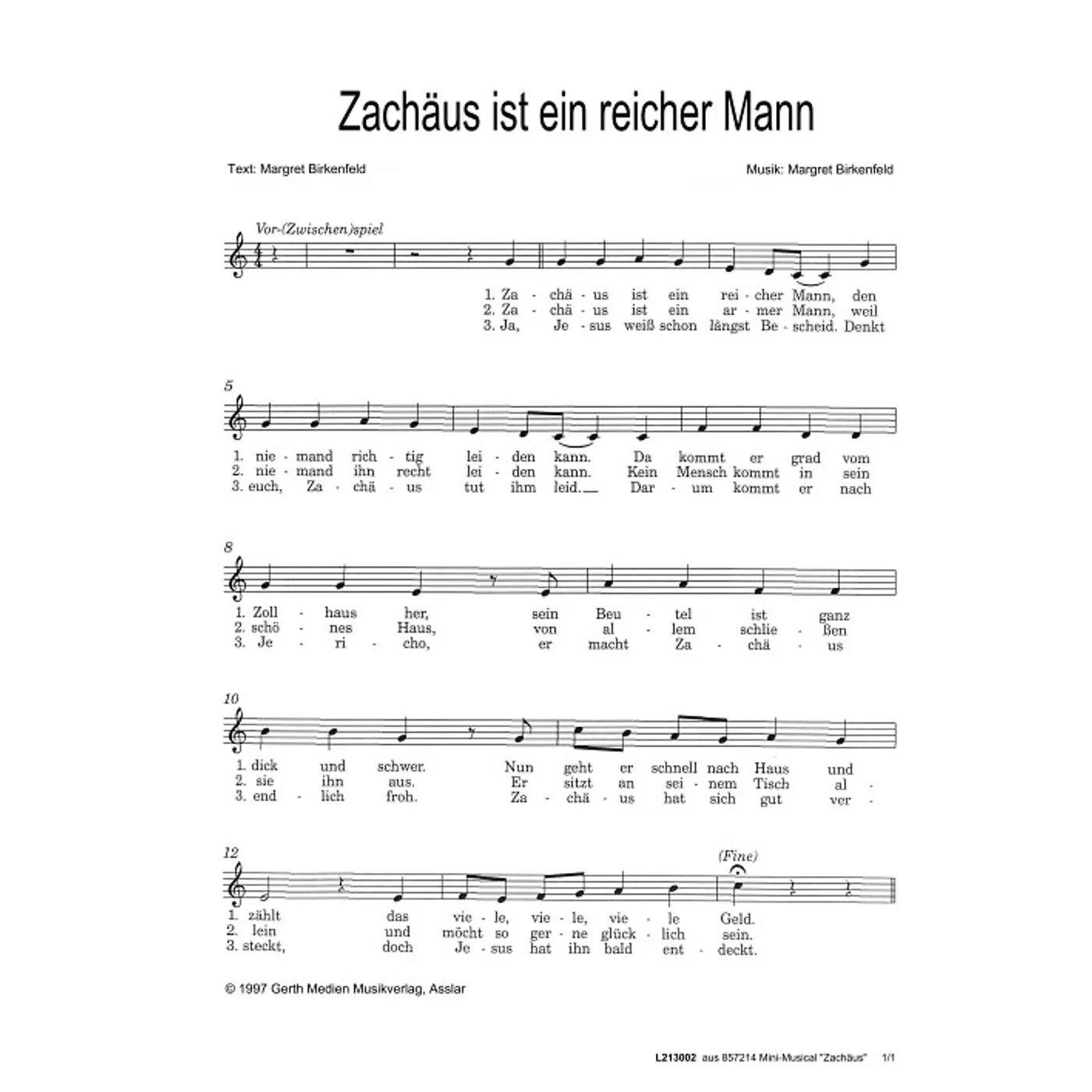 Zachäus ist ein reicher Mann (diese Variante haben Sie gerade ausgewählt) (einstimmig, C-Dur) Margret Birkenfeld (Komposition, Text) |