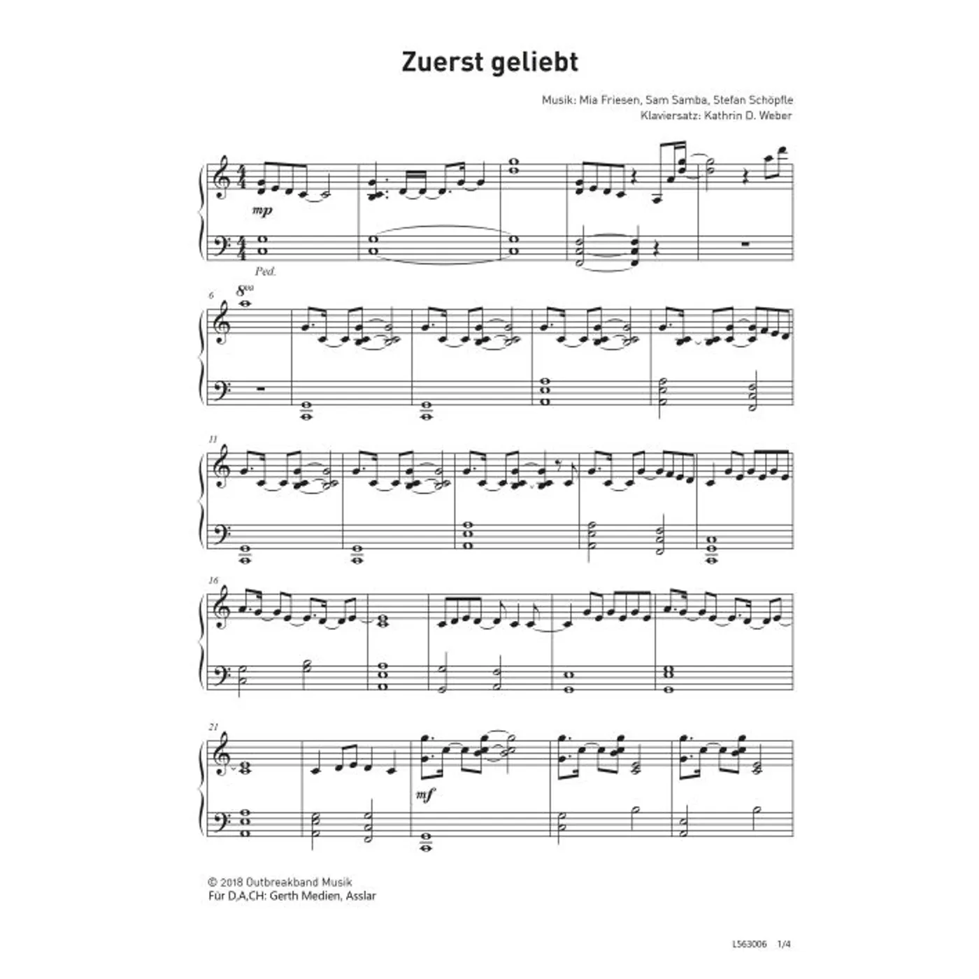 Zuerst geliebt (diese Variante haben Sie gerade ausgewählt) (modern, Klavier, Klavierpartitur, Partituren) Mia Friesen (Komposition), Sam Samba (Komposition), Stefan Schöpfle (Komposition), Kathrin D. Weber (Klaviersatz) |